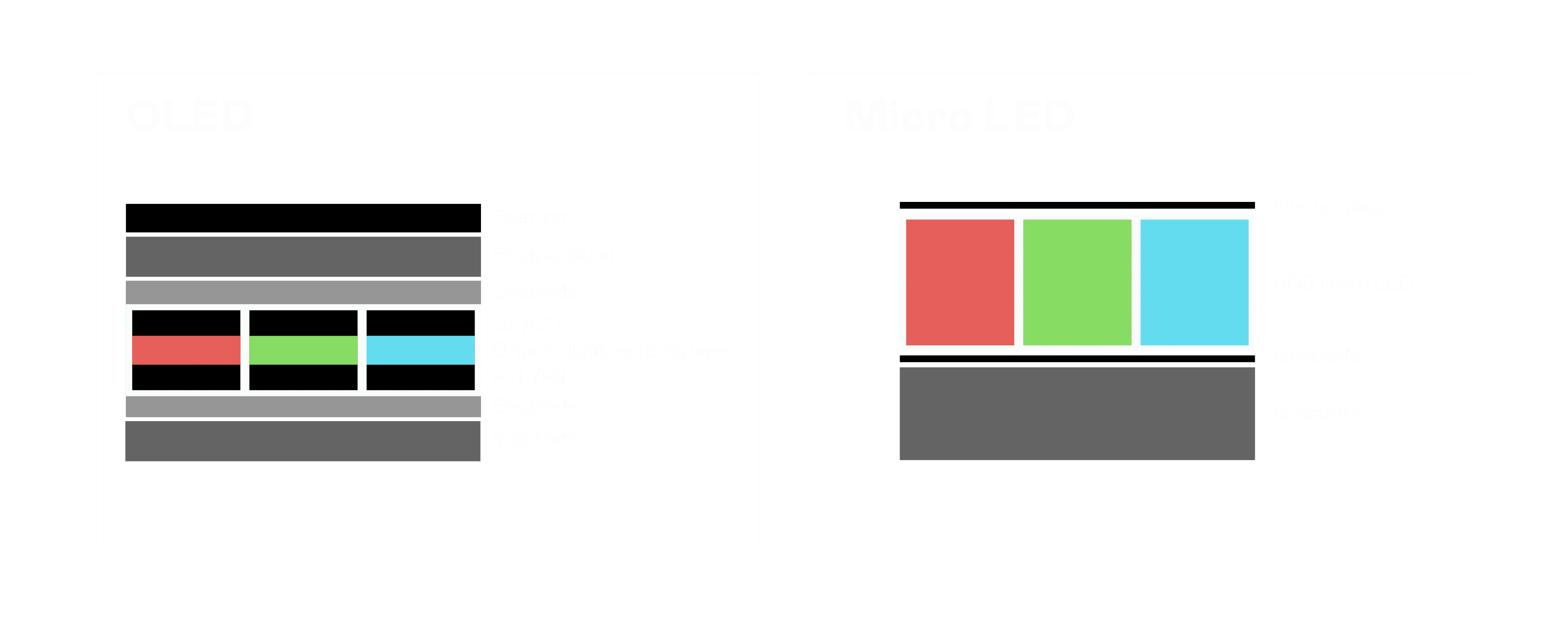 以 LED 做为显示画素,,,可让 LED 的发光效率发挥到极致,,,从而让显示器具备优异的亮度表现,,不论是在户外或室内,,均具备出众的显示效果。。。。同时,,与使用有机材料的 OLED 相比,,LED 具备更稳定、、、、寿命更长的特性,,不仅不会有画面烙印问题,,,,而且更不容易出现故障、、、、坏点。。