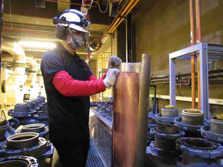 至成国际将废弃物转化成有效的工业或民生原物料,,,图为废铜液淬炼后再制成纯度极高的铜管