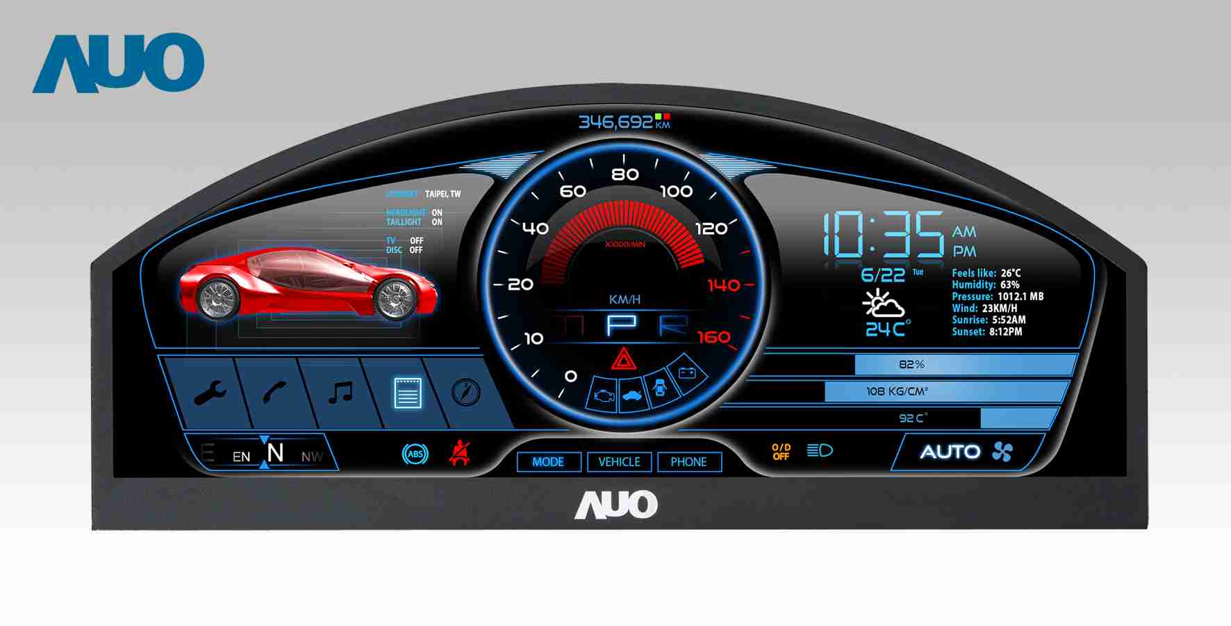 至成国际 12.3吋超高解析异型切割车用面板,,,拥有流线外观及精细画质